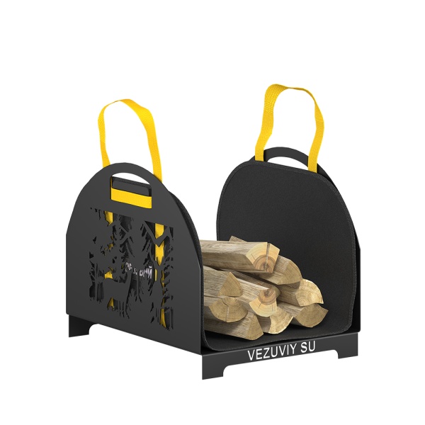 Прорезной узор на боковых поверхностях дровницы отлично сочетается с другими аксессуарами Везувий в стиле «Русский лес». Дровница будет хорошо выглядеть вместе с каминным набором, часами и другими деталями интерьера в этом приятном дизайне. Дровница Везувий «Русский Лес» D430B рассчитана на применение с сумкой для переноски дров Везувий S 620, которая поставляется в комплекте. Сумка специальными петлями в развёрнутом виде фиксируется на прорезных ручках дровницы