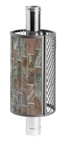 Сетка-каменка защищает от излучения, уменьшая поверхность открытой трубы, снимает тепло с ее стенок и направляет его на прогрев камней.