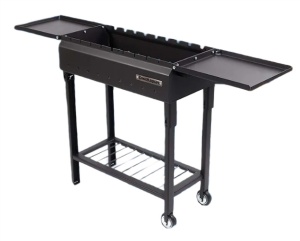 Вместительность в 9 шампуров позволяет приготовить для уютной компании, а плавная регулировка угла поворота шампуров обеспечивает идеальный результат. 2 складных стола-крышки Мангал оборудован двумя складными столами-крышками, на которых удобно располагать еду и напитки. Также они используются в качестве крышки для защиты от неблагоприятных погодных условий и безопасного хранения горячей углей.