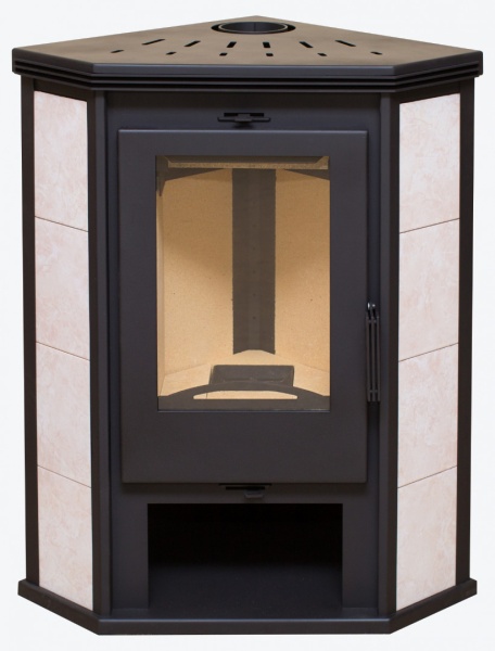 Компактная угловая печь с диаметром дымоходного патрубка 115 мм.