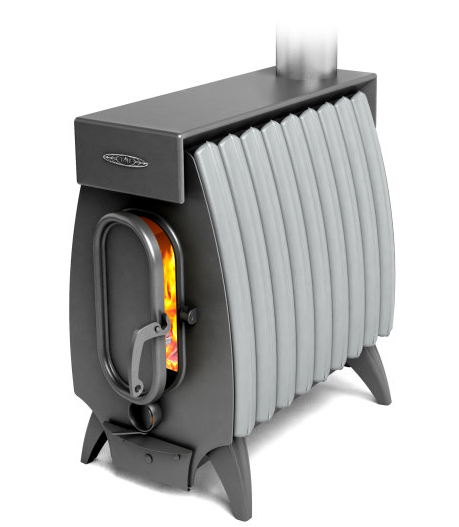 Упрощенная модификация печи «Огонь-батарея 9», отличающаяся наличием стальной дверцы без стекла и конвектора цвета «серый металлик», а также выходом дымовой трубы вверх и отсутствием чугунной конфорки.