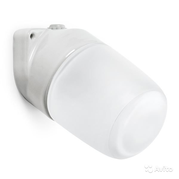 Корпус изготовлен из керамики, материал плафона — из силикатного термостойкого стекла матового цвета. Между корпусом и плафоном светильника установлено термостойкое силиконовое уплотнение для защиты от проникновения влажного пара, брызг воды и пыли.