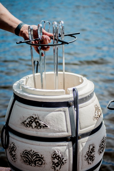 Благодаря большой и удобной горловине возможно размещение большого количества мяса и овощей внутри тандыра. Это даёт возможность приготовить до 8 шампуров и накормить сразу много гостей. Увеличенное дно тандыра позволяет заложить больше дров, что дает больше тепла. Данная особенность позволяет производить повторную закладку пищи для приготовления, без дополнительного розжига тандыра. Совок, входящий в комплектацию имеет большую рабочую поверхность, что делает уборку тандыра лёгкой и комфортной. Удлиненная кочерга, позволяет удобно справляться как с большими дровами, так и с углями на дне тандыра, избегая контакта кожи рук с жаром от углей и огня. Имея плотно прилегающую крышку и толстые стенки, тандыр длительное время поддерживает высокую температуру. Это позволяет более равномерно прожаривать даже самые крупные куски мяса (свиная рулька и баранья нога).