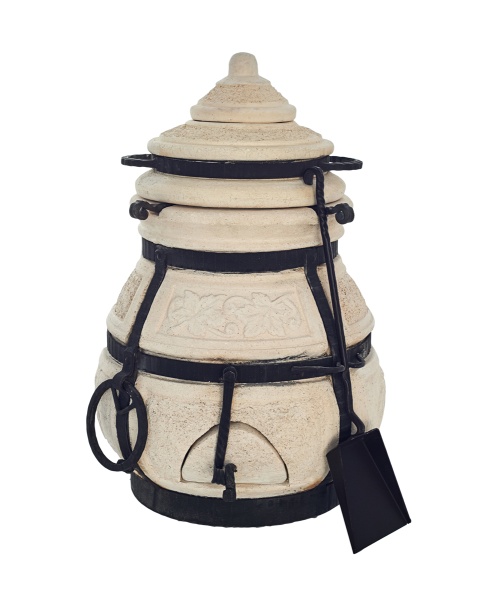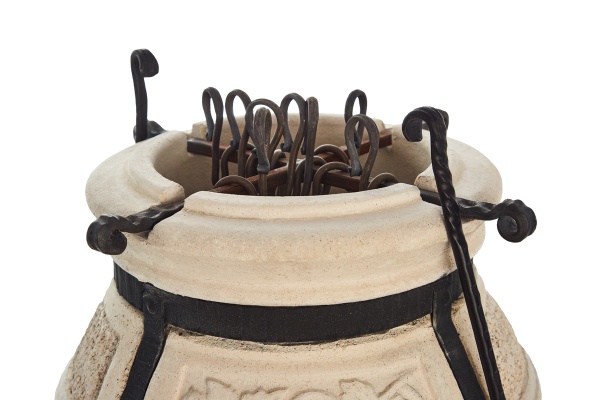 Тандыр Амфора производится из экологически чистых отечественных керамических огнеупорных материалов, обжигается при температуре свыше 1100 градусов Цельсия, для прочности и красоты оковывается металлом. Несмотря на то, что при использовании могут возникать волосяные трещины, стальная оковка с элементами ковки прочно удерживает тандыр. Срок службы тандыра не ограничен, при правильном использовании, он вам прослужит годы и десятилетия.