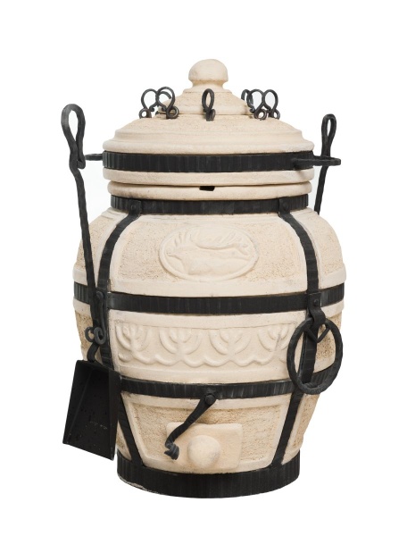 Тандыр Амфора производится из экологически чистых отечественных керамических огнеупорных материалов, обжигается при температуре свыше 1100 градусов Цельсия, для прочности и красоты оковывается металлом. Несмотря на то, что при использовании могут возникать волосяные трещины, стальная оковка с элементами ковки прочно удерживает тандыр. Срок службы тандыра не ограничен, при правильном использовании, он вам прослужит годы и десятилетия.